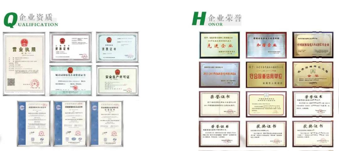 福建省春天生態(tài)科技股份有限公司先后獲得國(guó)家授予的“國(guó)家高新技術(shù)企業(yè)”、“中國(guó)風(fēng)景園林學(xué)會(huì)優(yōu)秀園林工程大金獎(jiǎng)”、“福建省守合同、重信用單位”、“福建省城鄉(xiāng)建設(shè)系統(tǒng)和諧企業(yè)”等榮譽(yù)稱號(hào)。