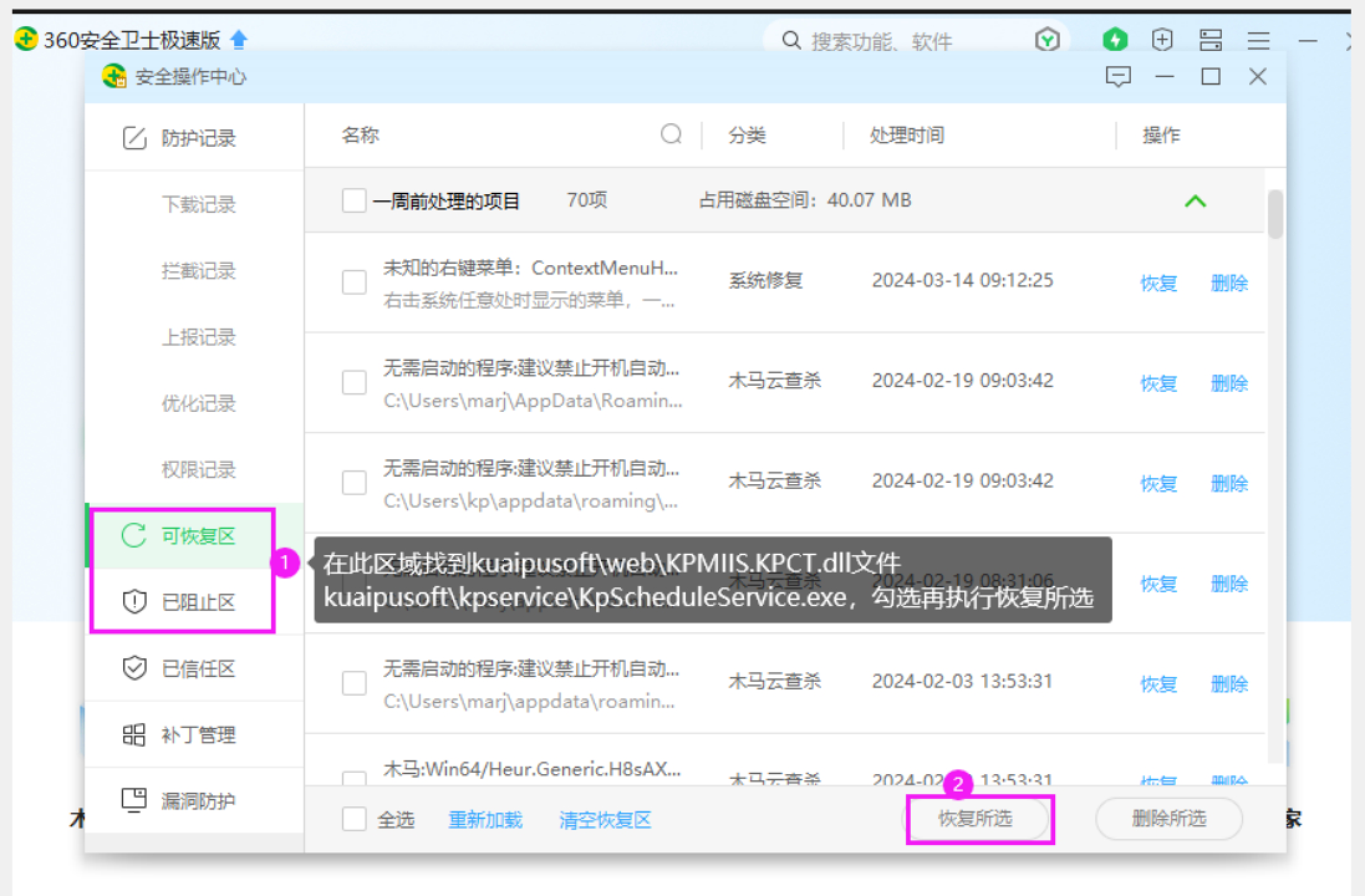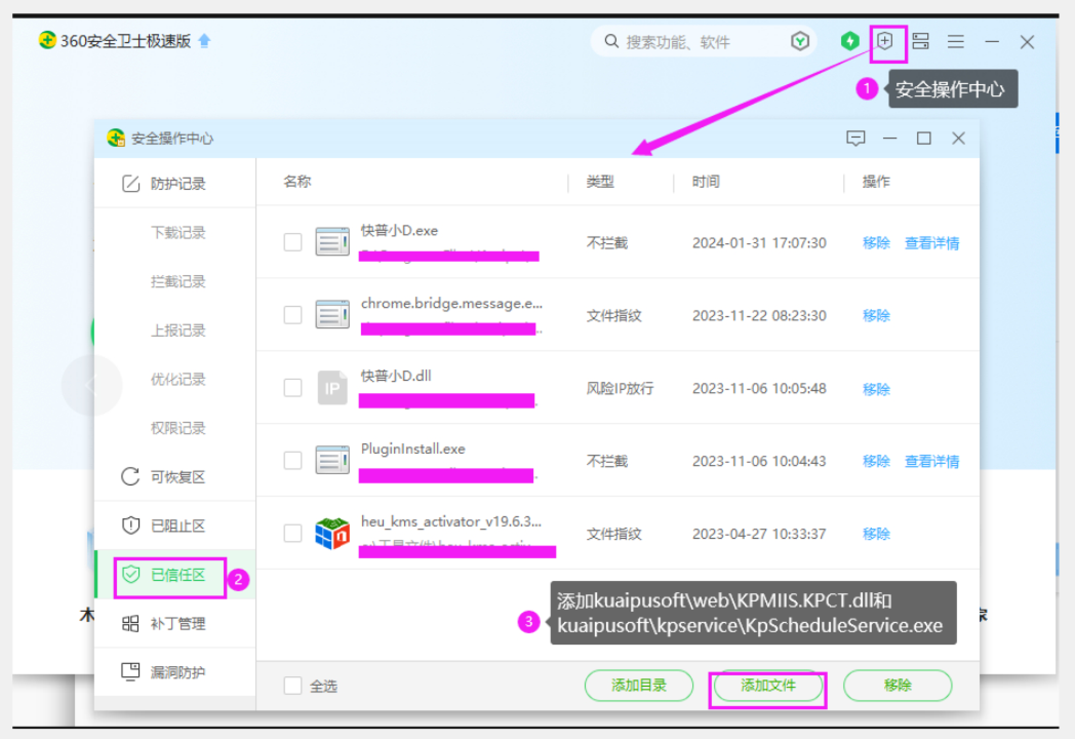 沒加入信任就被360隔離的,上面截圖那幾個(gè)文件可在隔離區(qū)恢復(fù),恢復(fù)后按上面方法加入信任:
