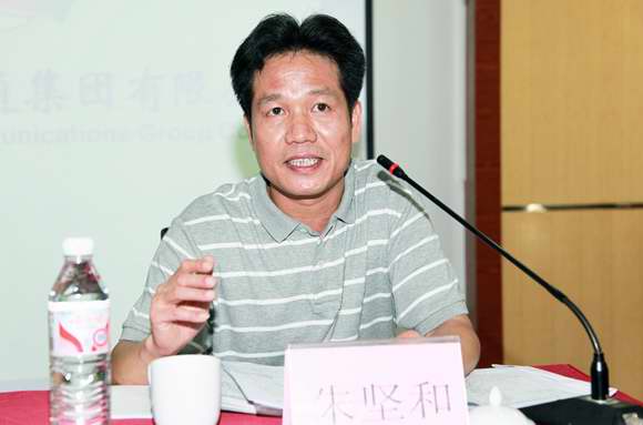圖為集團公司董事長、黨委書記朱堅和作重要講話