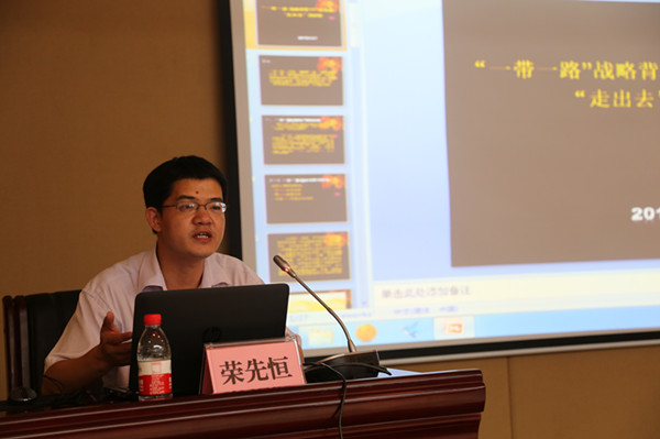 榮博士從戰(zhàn)略內(nèi)涵、歷史緣由、時(shí)代背景、框架思路等方面詳細(xì)解讀和分析了“一帶一路”戰(zhàn)略構(gòu)想,并結(jié)合廣西發(fā)展優(yōu)勢(shì)及集團(tuán)公司發(fā)展需要進(jìn)行了針對(duì)性、科學(xué)性、前瞻性地輔導(dǎo)。榮博士指出,當(dāng)前“一帶一路”戰(zhàn)略的實(shí)施,為中國(guó)企業(yè)“走出去”創(chuàng)造出了難得的歷史機(jī)遇,是中國(guó)未來(lái)10年的重大政策紅利,必將加速中國(guó)企業(yè)“走出去”步伐。新發(fā)展集團(tuán)作為廣西的國(guó)有大型企業(yè),要善于把握新的經(jīng)濟(jì)發(fā)展形勢(shì),主動(dòng)融入“一帶一路”國(guó)家戰(zhàn)略,抓住“一帶一路”建設(shè)新重點(diǎn),利用廣西的先行合作平臺(tái)優(yōu)勢(shì),積極與其他企業(yè)合作“走出去”,以海陸互通重點(diǎn)通道工程為突破,建立靈活機(jī)制,多元化投資,在“一帶一路”大聯(lián)通網(wǎng)絡(luò)建設(shè)中有所作為。