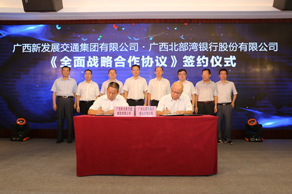 圖一:集團(tuán)公司黨委副書(shū)記張友坐與廣西北部灣銀行副行長(zhǎng)陳捷