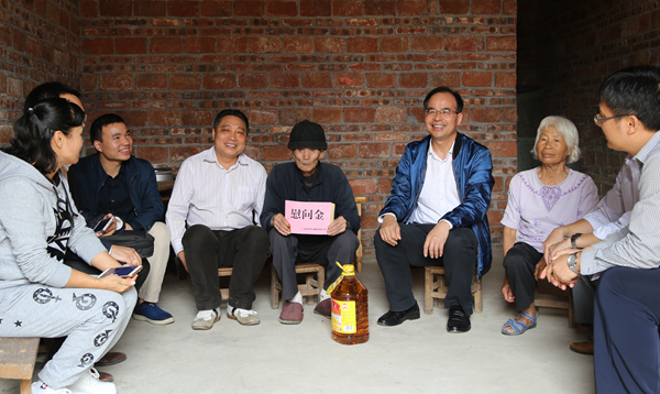 10月25日,集團(tuán)公司副總經(jīng)理李德智、辦公室主任磨立堂,工程院黨總支部書記、院長(zhǎng)謝登禹以及合山市人大常委會(huì)主任藍(lán)賓北一行到集團(tuán)公司扶貧聯(lián)系來(lái)賓合山市河里鎮(zhèn)河里村開展精準(zhǔn)扶貧日走訪慰問(wèn)活動(dòng)。通過(guò)開展座談交流,進(jìn)一步掌握河里村脫貧攻堅(jiān)進(jìn)展情況,并為下一步脫貧工作提出建議與對(duì)策。同時(shí),還來(lái)到河里村韋啟助、羅耀權(quán)、曾有姣、韋遷池等貧困戶的家里,了解生產(chǎn)生活情況,并送上了慰問(wèn)金和慰問(wèn)品。