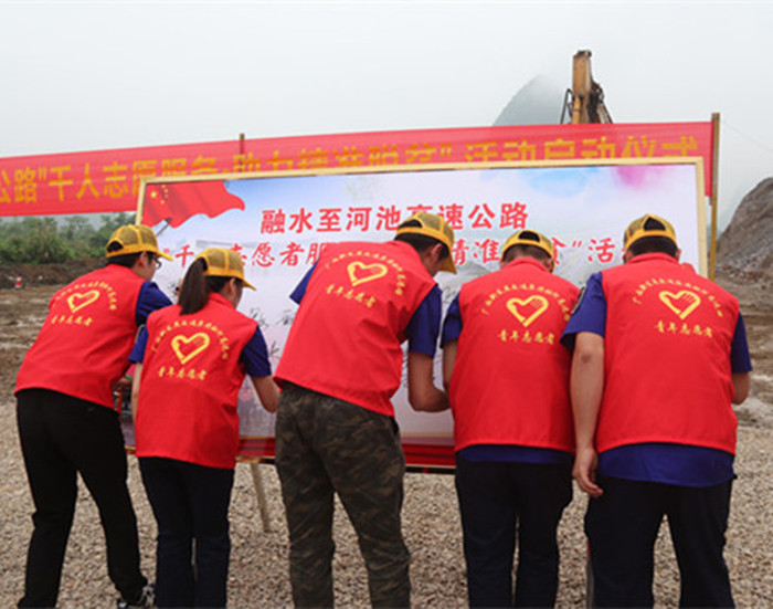 新恒通公司黨委書記、董事長(zhǎng)賴水平介紹,集團(tuán)公司所建設(shè)的賀州至巴馬、融水至河池高速公路是廣西縣縣通高速公路重點(diǎn)工程,沿線大部分縣區(qū)仍屬貧窮縣。為響應(yīng)中央精準(zhǔn)扶貧和建設(shè)美麗中國(guó)的號(hào)召,擔(dān)負(fù)起國(guó)企的社會(huì)責(zé)任,新恒通公司組織全線參建單位成立青年志愿者服務(wù)隊(duì),結(jié)合項(xiàng)目實(shí)際,從2018年1月至2020年12月在賀巴、融河等高速公路全線范圍內(nèi)開展為期三年的“千人志愿服務(wù),助力精準(zhǔn)脫貧”活動(dòng)。